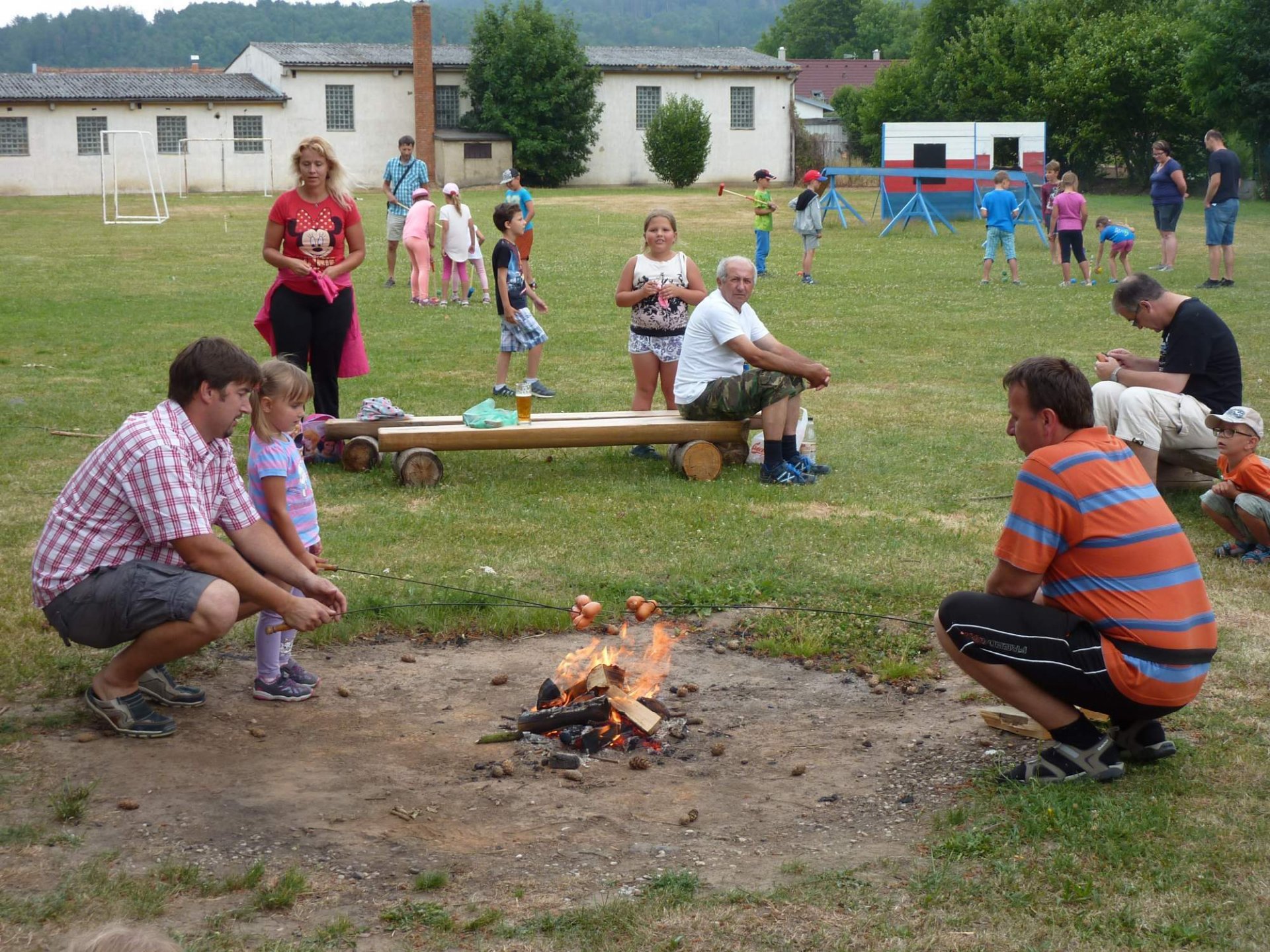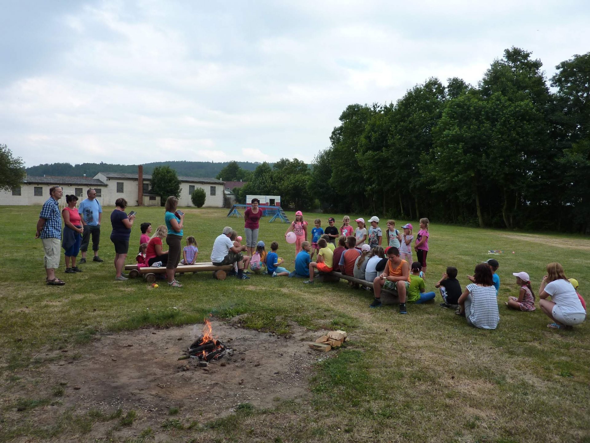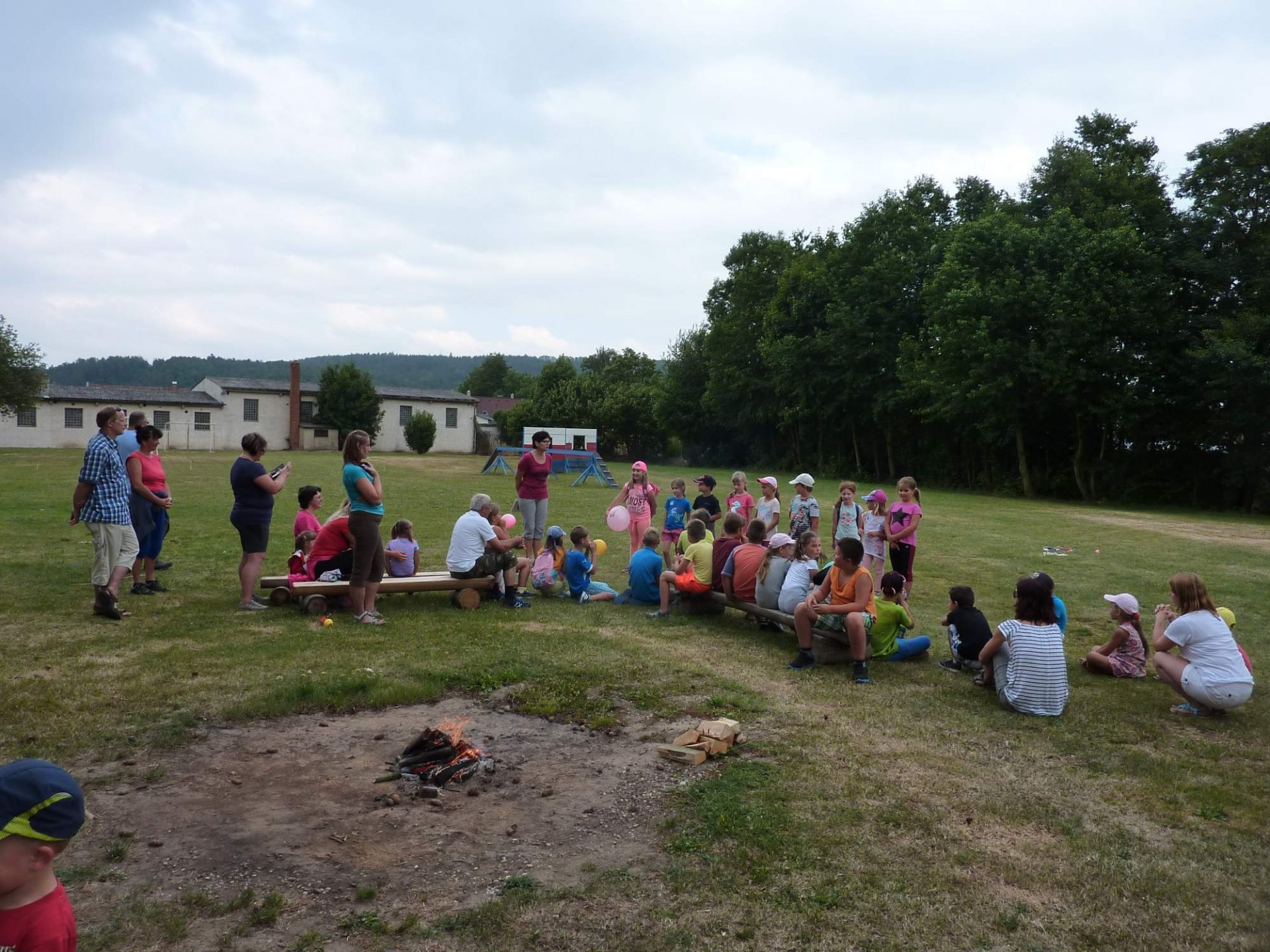 Ve 3 hodiny odpoledne se vydala skupinka tatínků znalá místního okolí připravit trasu. Za 45 minut po nich vyrazili po cestě značené fáborky nebo šipkami ostatní tatínkové nebo maminky se svými ratolestmi, aby plnili různé úkoly a bez bloudění dorazili do cíle. Podařilo se. Před pátou hodinou se obě party setkali na místním hřišti, kde si přítomní školáci připili dětským šampaňským na úspěšný konec školního roku, prvňáčci vyprávěli pohádku O třech medvědech a o zlé babce Chňapce a nakonec si všichni opekli donesené špekáčky za zvuků kytary a zpěvu trempských písní.